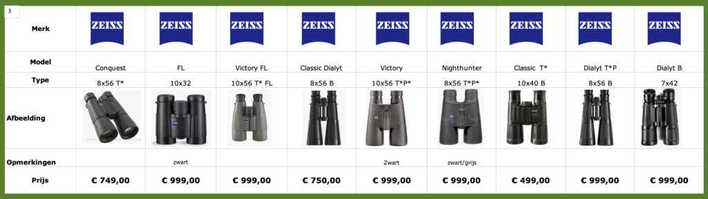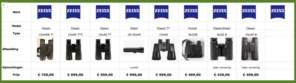 Zeiss Classic 10×40 (leder uitvoering) € 499,=