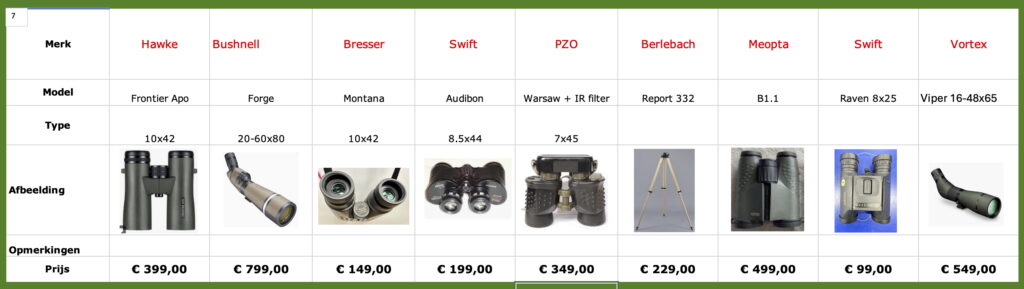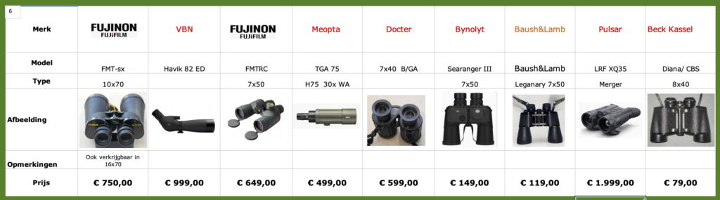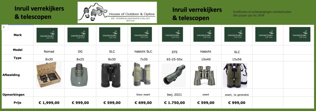 Inruil verrekijkers, telescopen en uitlopende modellen: