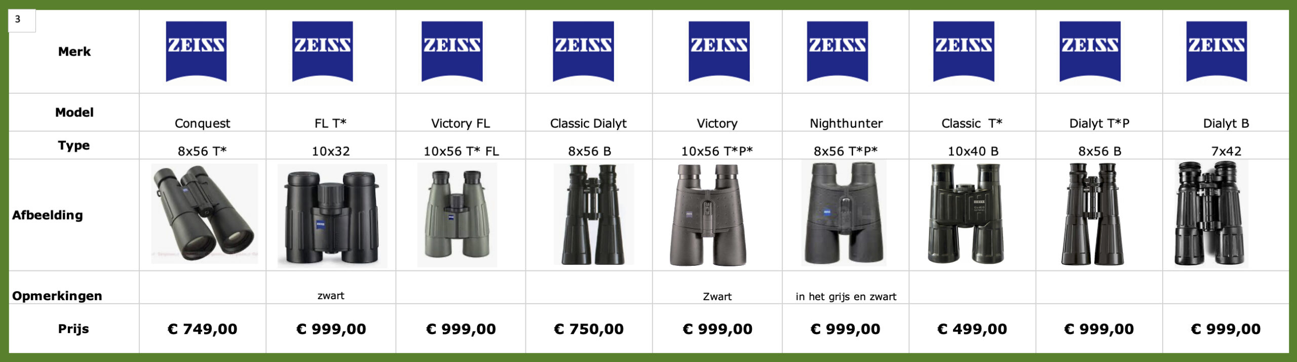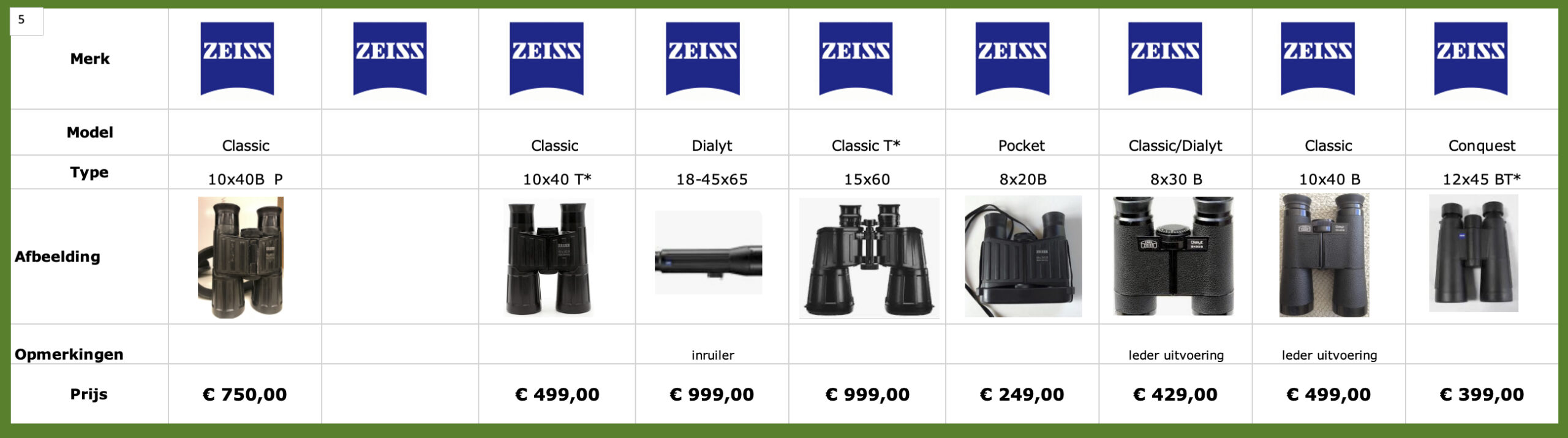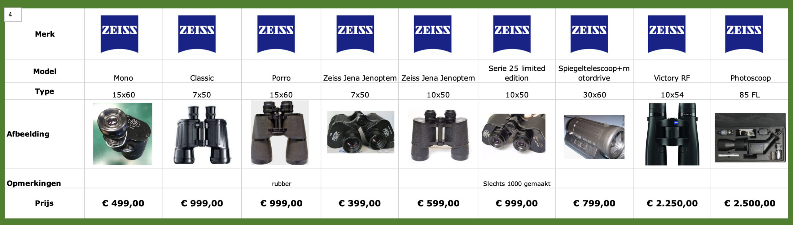 Zeiss Classic 10×40 (leder uitvoering) € 499,=