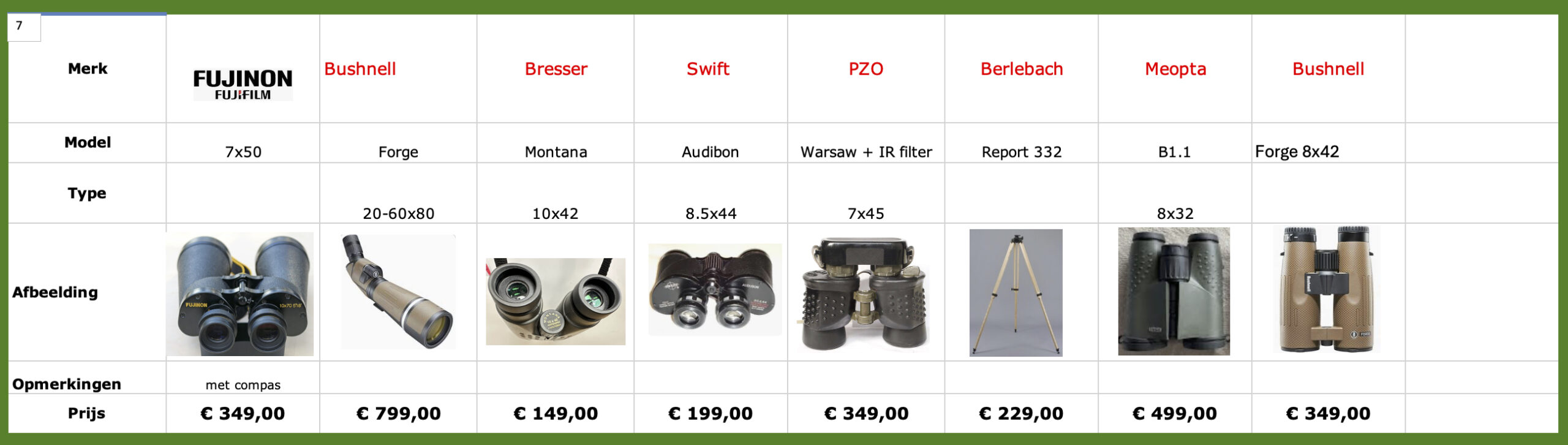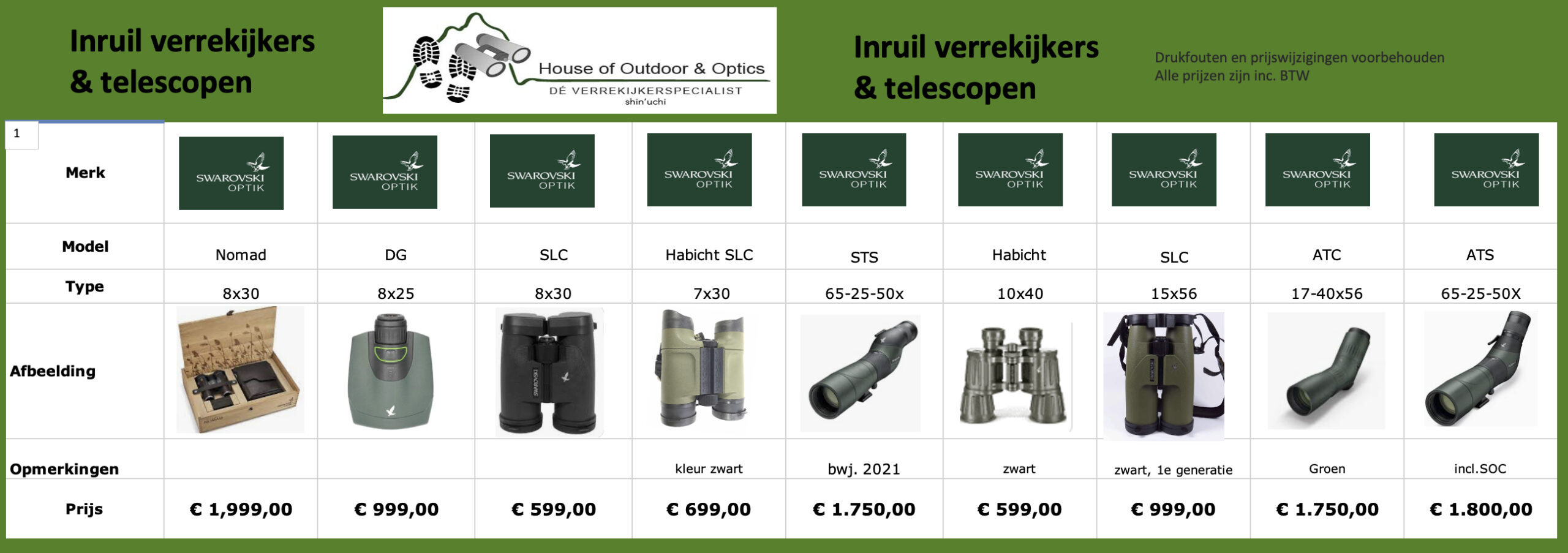 Inruil verrekijkers en uitlopende modellen: